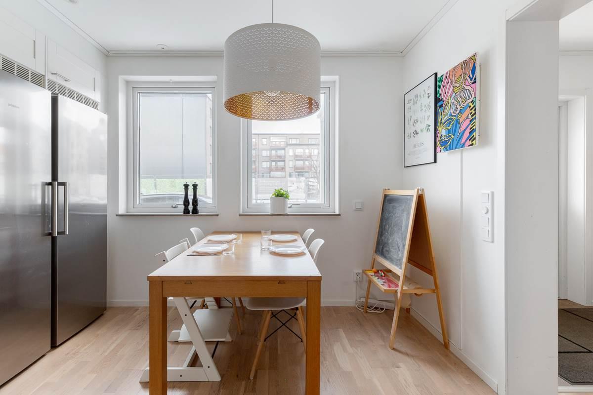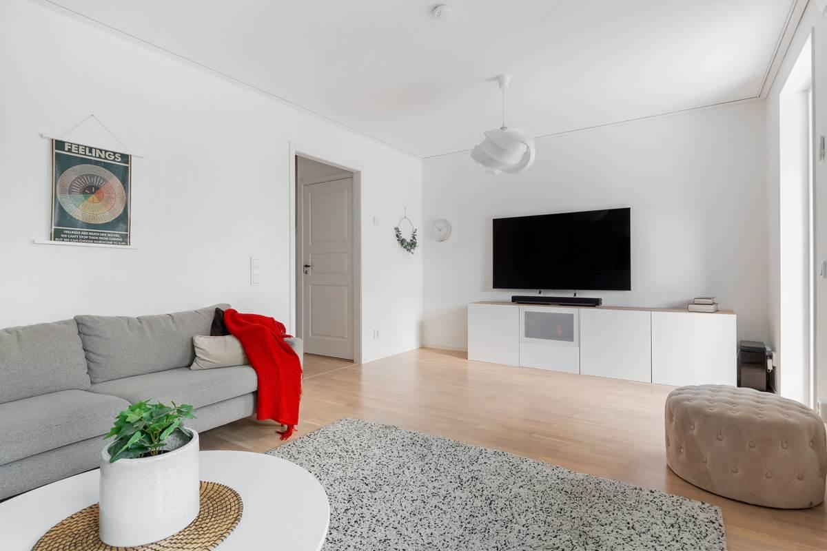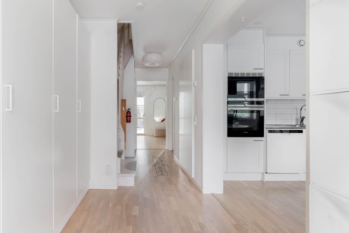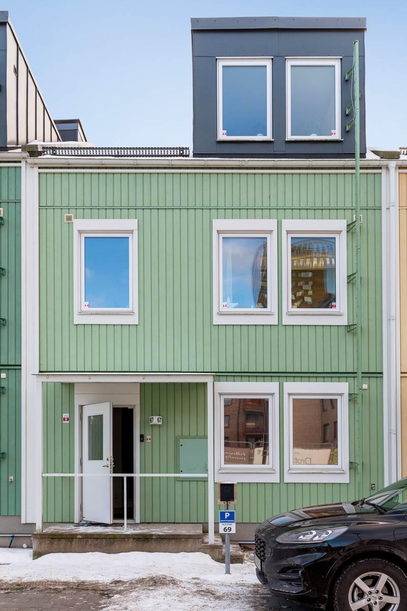 På entréplanet möts du av en välkomnande hall med goda förvaringsmöjligheter. Här finns ett modernt kök med bra arbetsytor och stilrena materialval samt plats för matbord. Vidare finns ett helkaklat badrum med tvättmaskin och torktumlare. Det rymliga vardagsrummet erbjuder gott om plats för både soffgrupp och matplats och har ett fint ljusinsläpp. Härifrån nås bostadens altan och trädgård, perfekt för sommarens grillkvällar och umgänge.