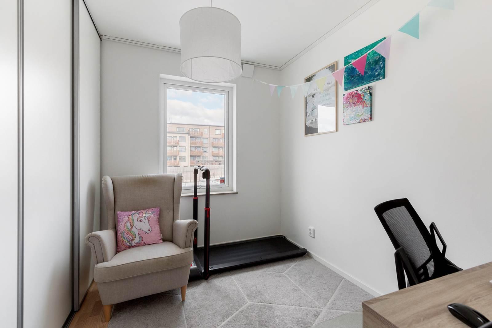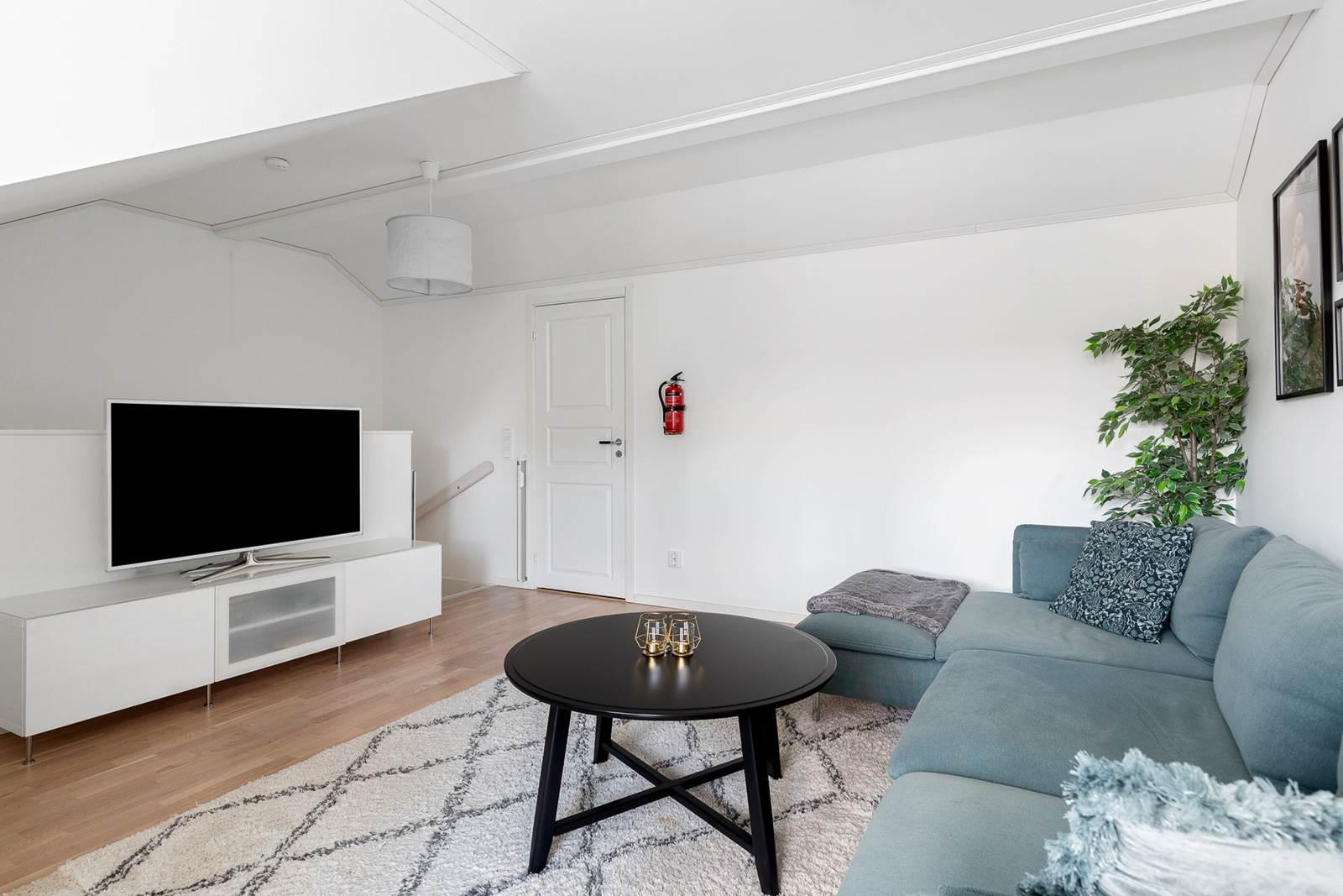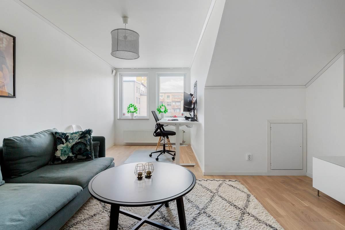 Högst upp i huset finns vindsplanet med ett generöst allrum om ca 25 kvm, som erbjuder stora möjligheter att nyttjas som master bedroom, tonårsdel, hemmakontor, tv-rum eller hobbyyta. Här finns även goda förvaringsmöjligheter, vilket gör planet både praktiskt och flexibelt.