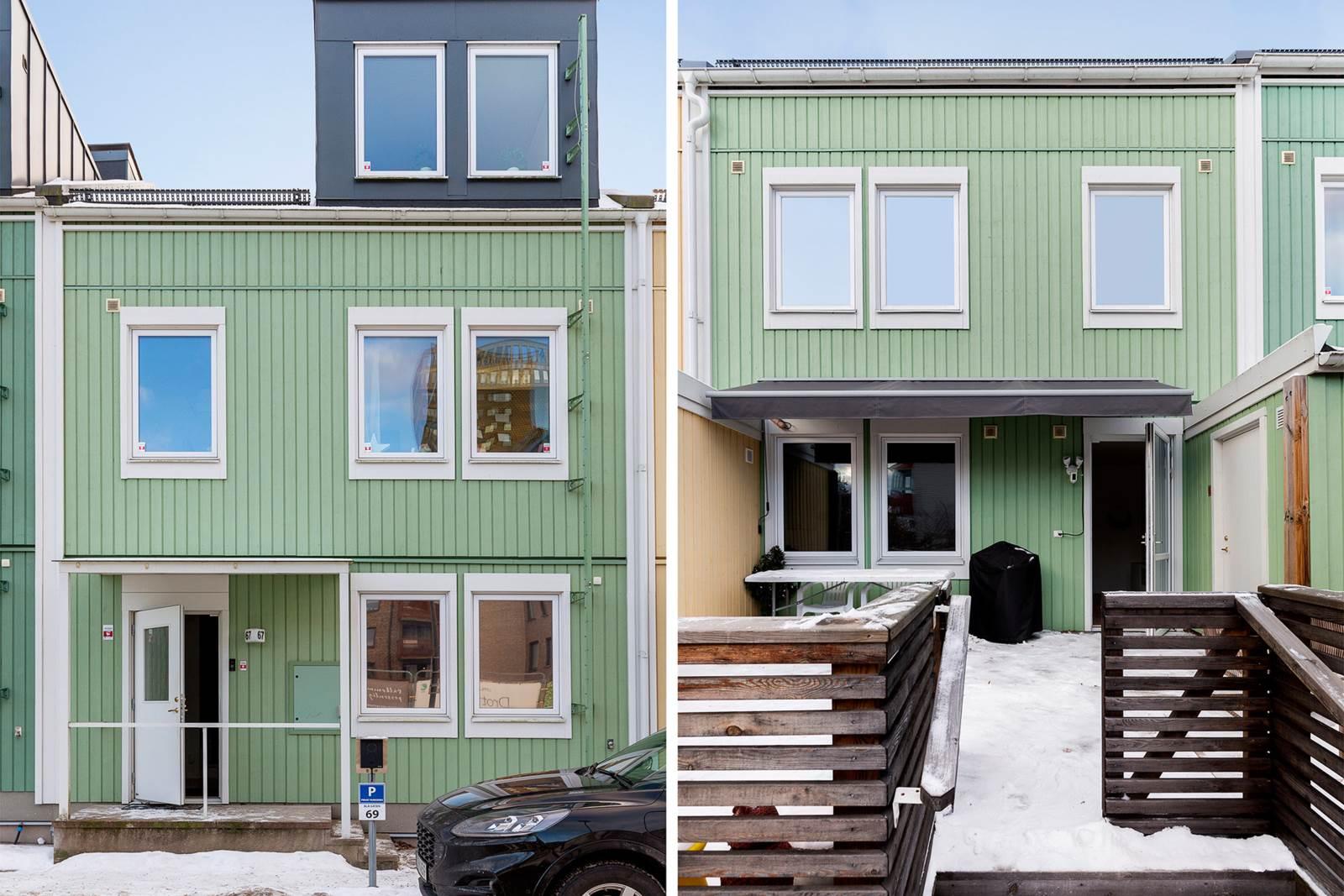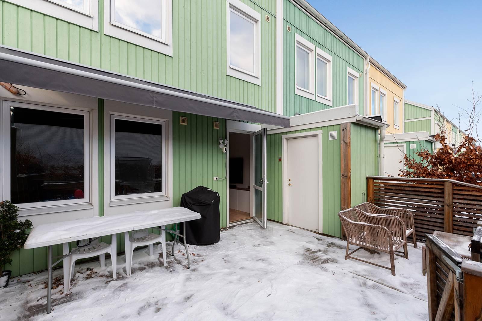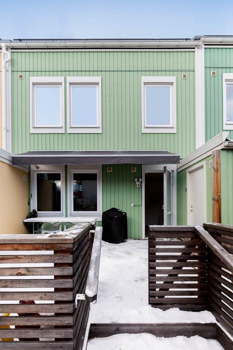 Till bostaden hör förråd, egen uteplats samt bilplats i direkt anslutning till huset. Området är lugnt och barnvänligt med närhet till skolor, förskolor, lekplatser samt Vilundaområdet med simhall, sporthall och ishall.