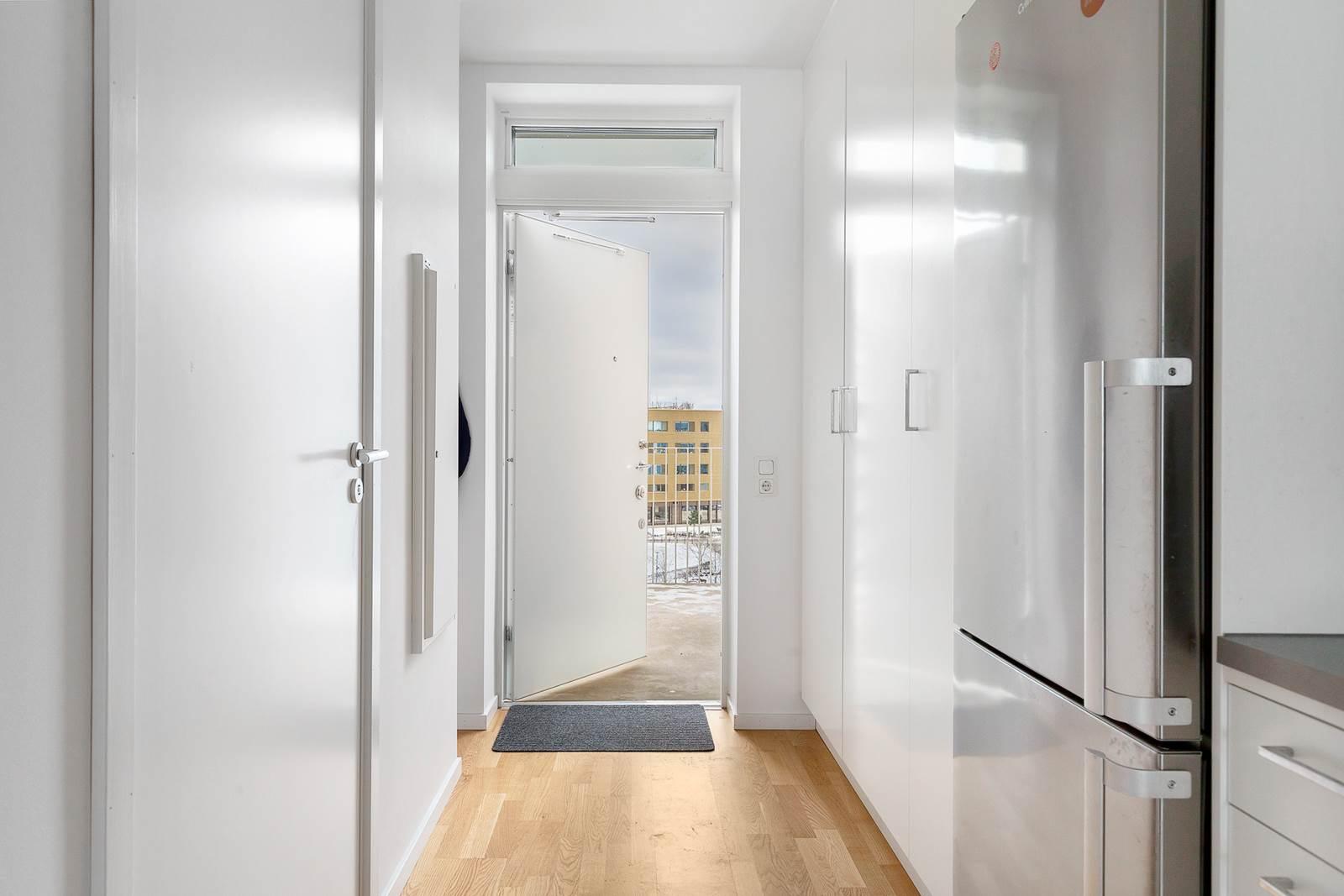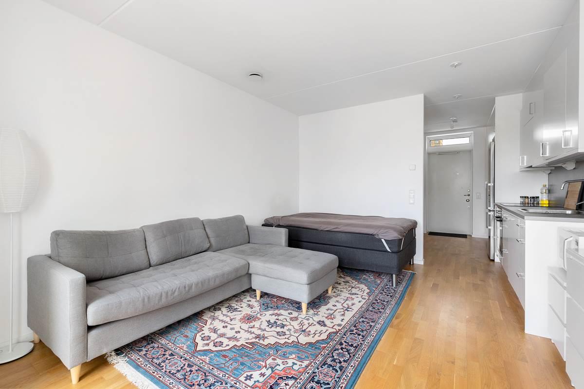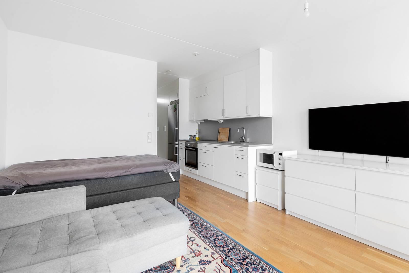 Stig in och upplev det ljusa och luftiga vardagsrummet som välkomnar dig med naturligt ljus från de stora fönstren. Här finns plats för både avkoppling och sociala stunder. Köket är modernt och öppnar upp mot vardagsrummet, vilket skapar en trivsam atmosfär. Dessutom finns ett stilrent helkaklat badrum med tvättmaskin för extra bekvämlighet.