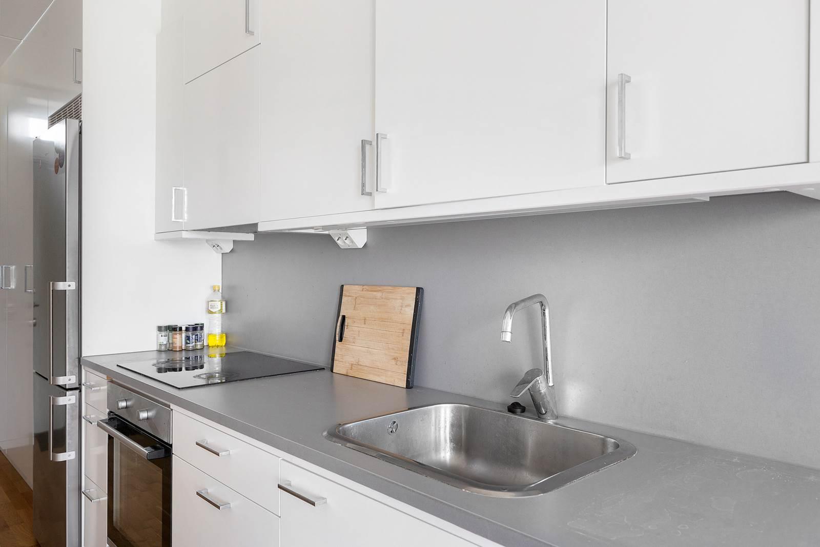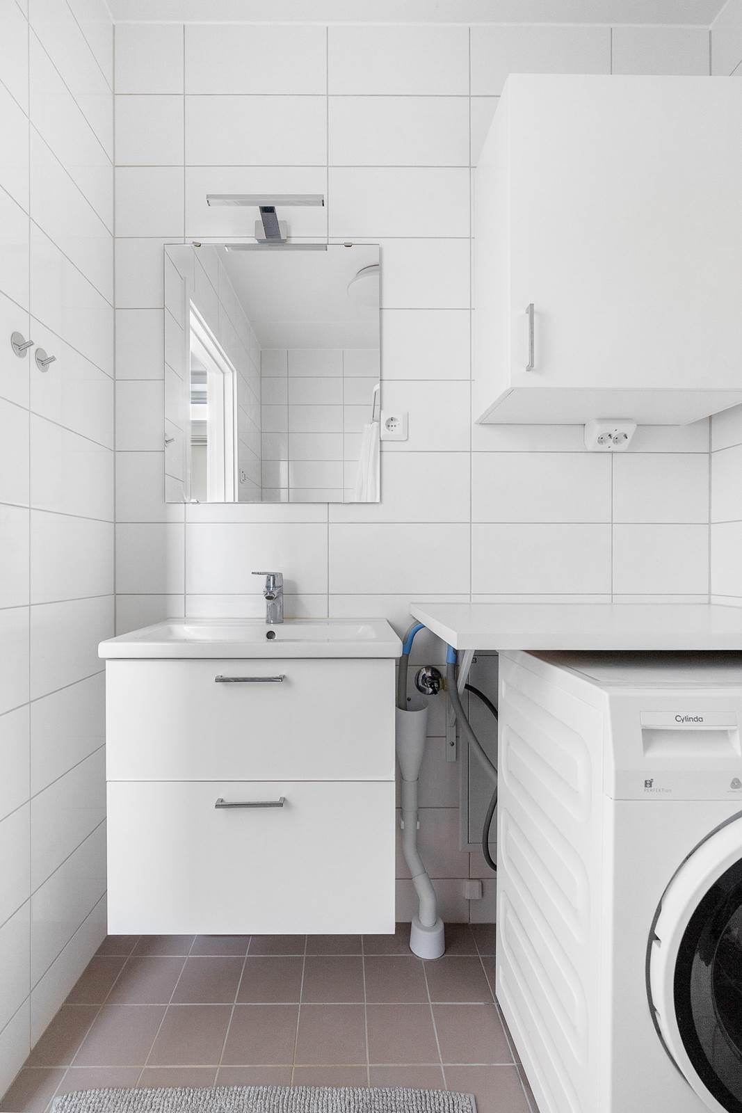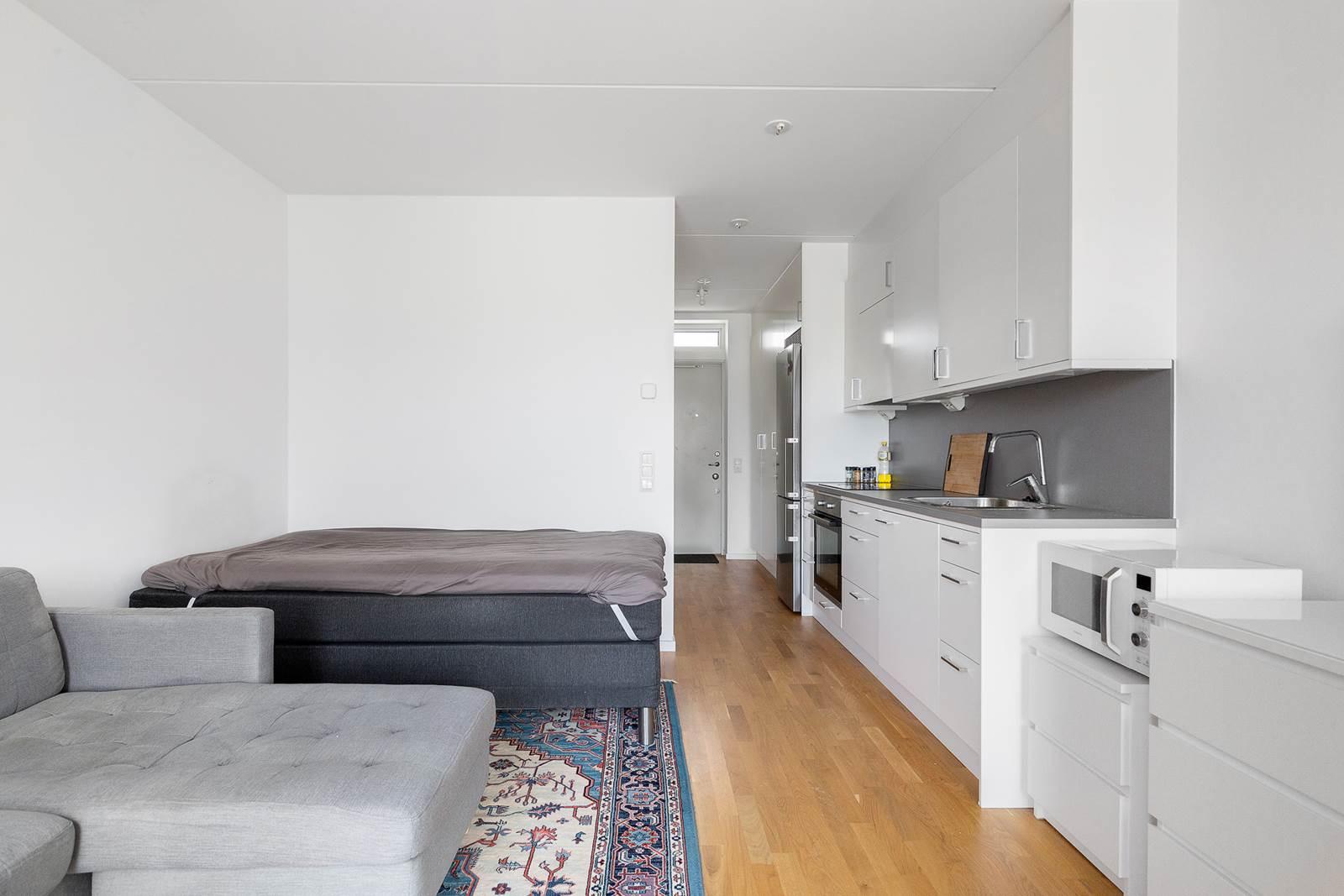Stig in och upplev det ljusa och luftiga vardagsrummet som välkomnar dig med naturligt ljus från de stora fönstren. Här finns plats för både avkoppling och sociala stunder. Köket är modernt och öppnar upp mot vardagsrummet, vilket skapar en trivsam atmosfär. Dessutom finns ett stilrent helkaklat badrum med tvättmaskin för extra bekvämlighet.