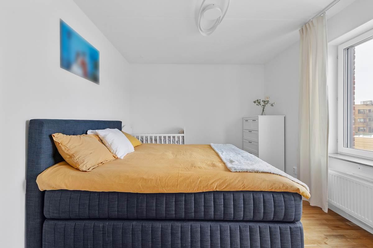 Lägenheten erbjuder två rymliga sovrum med inbyggda garderober, vilket ger generöst utrymme för dina kläder och tillbehör.