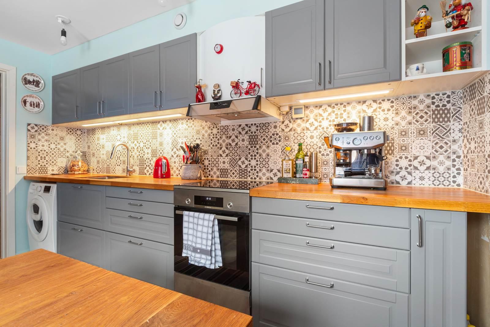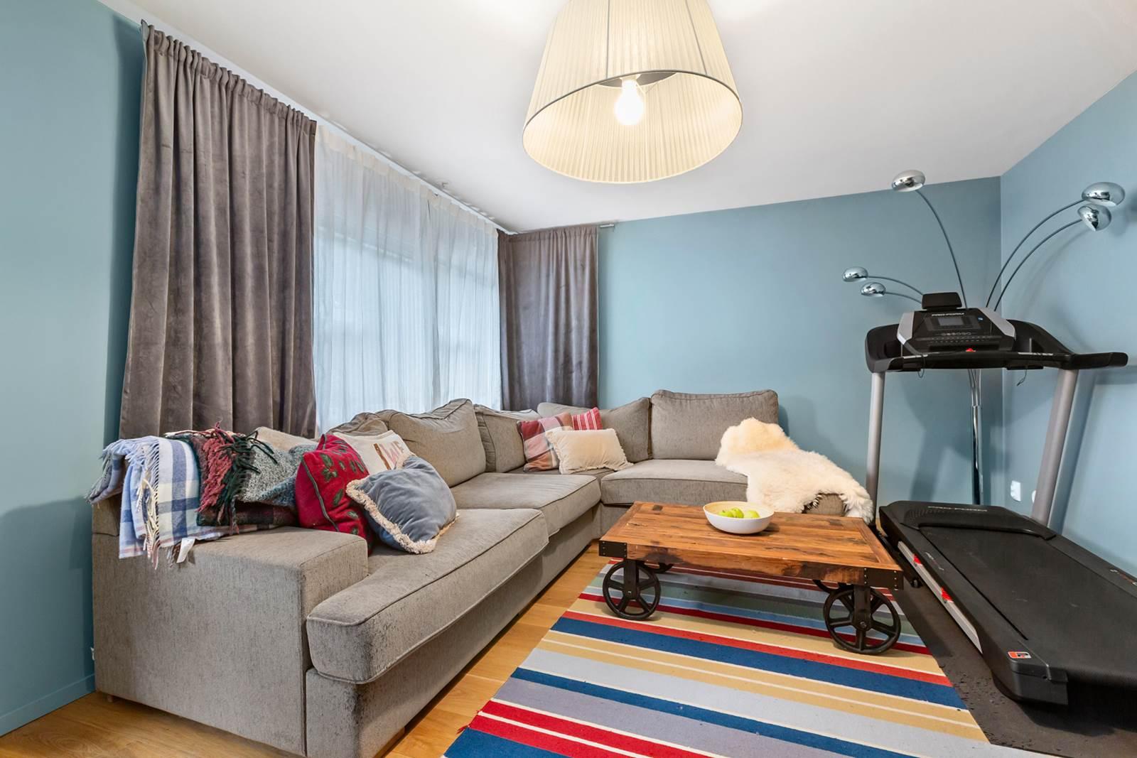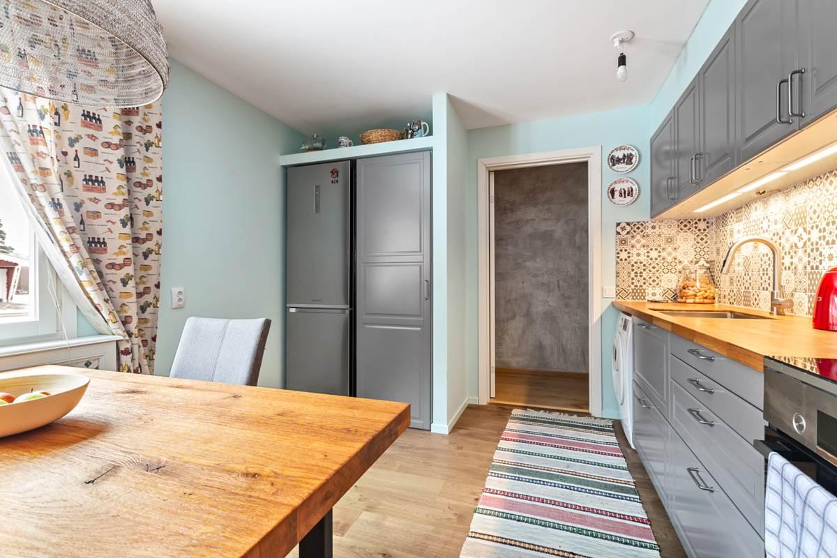 Det välutrustade köket erbjuder gott om arbetsytor och förvaring samt plats för matbord – perfekt för både vardag och trevliga middagar. Vardagsrummet är luftigt och lättmöblerat med stora fönster som släpper in rikligt med ljus och skapar en trivsam atmosfär.