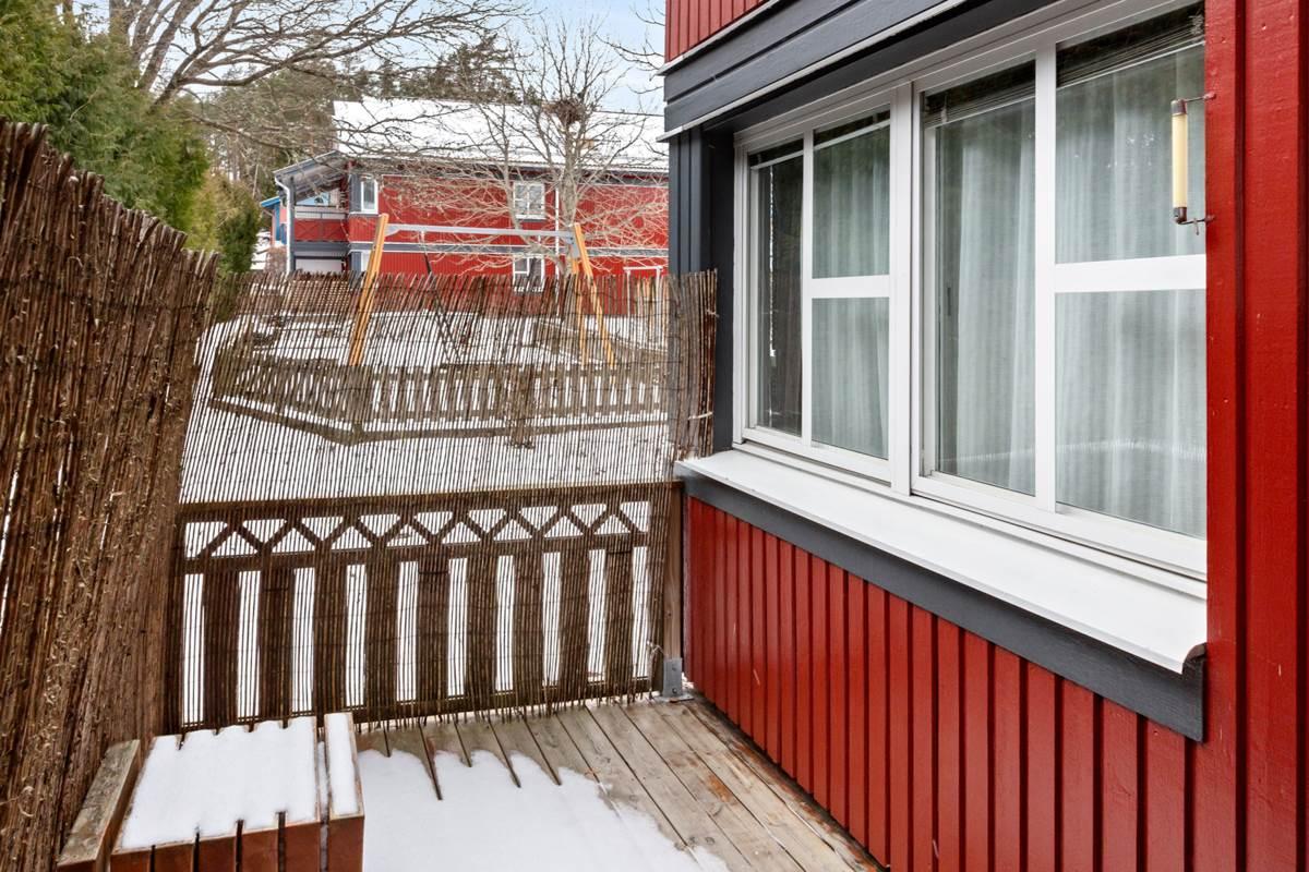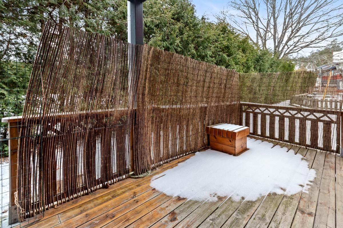 Från vardagsrummet nås den härliga uteplatsen i söderläge, där du kan njuta av solen stora delar av dagen – en perfekt plats för morgonkaffet, grillkvällar eller avkoppling i grönskan.