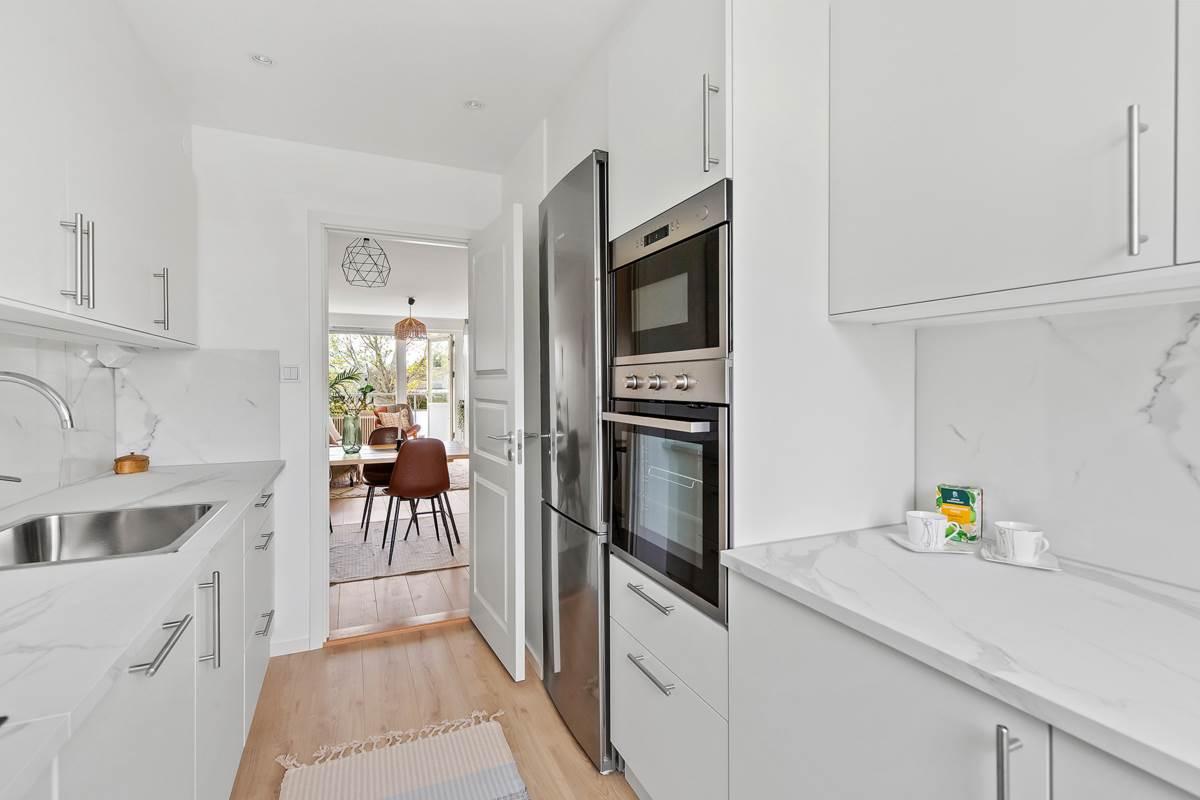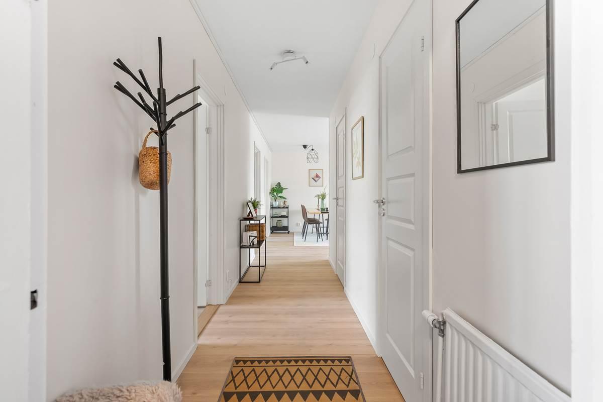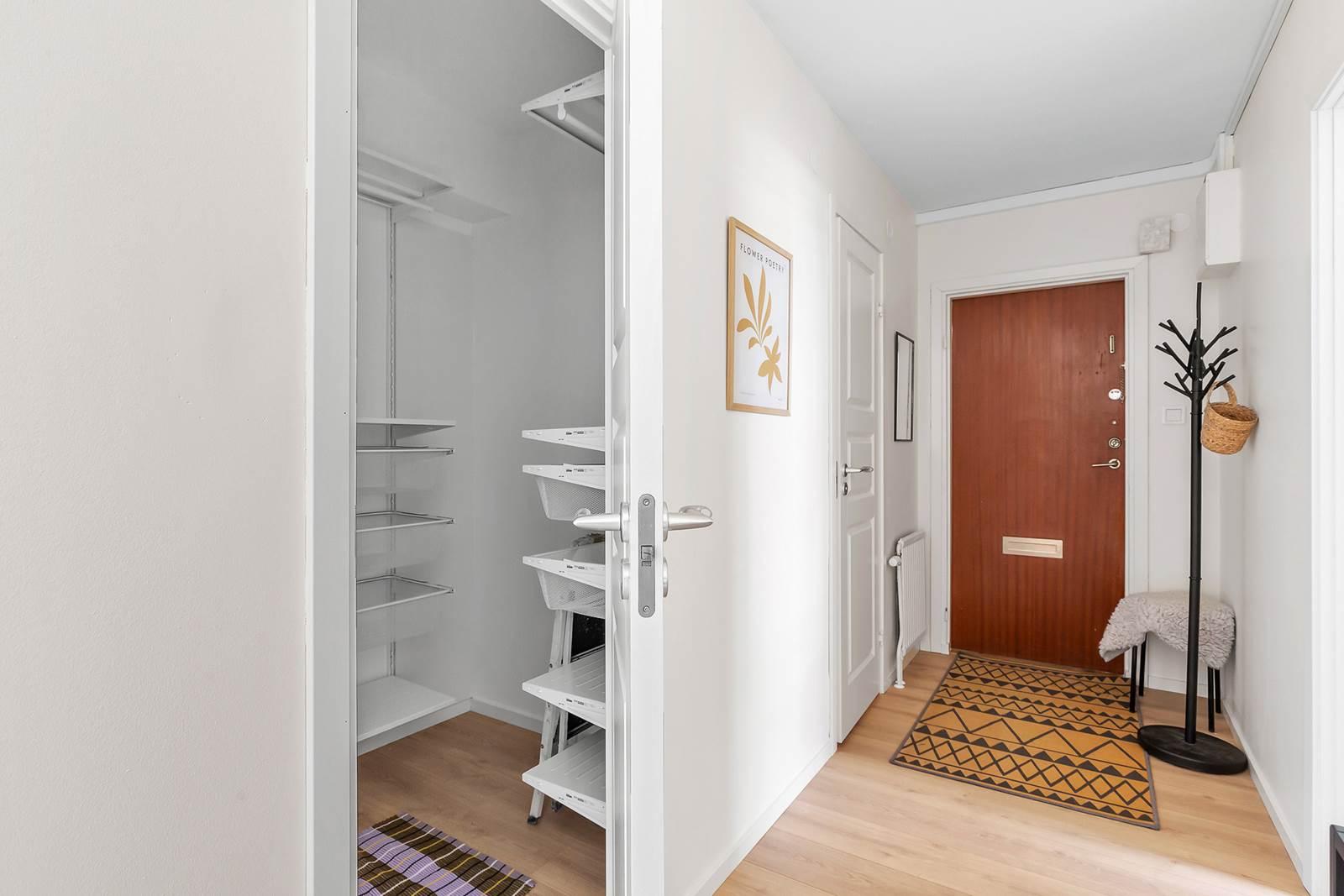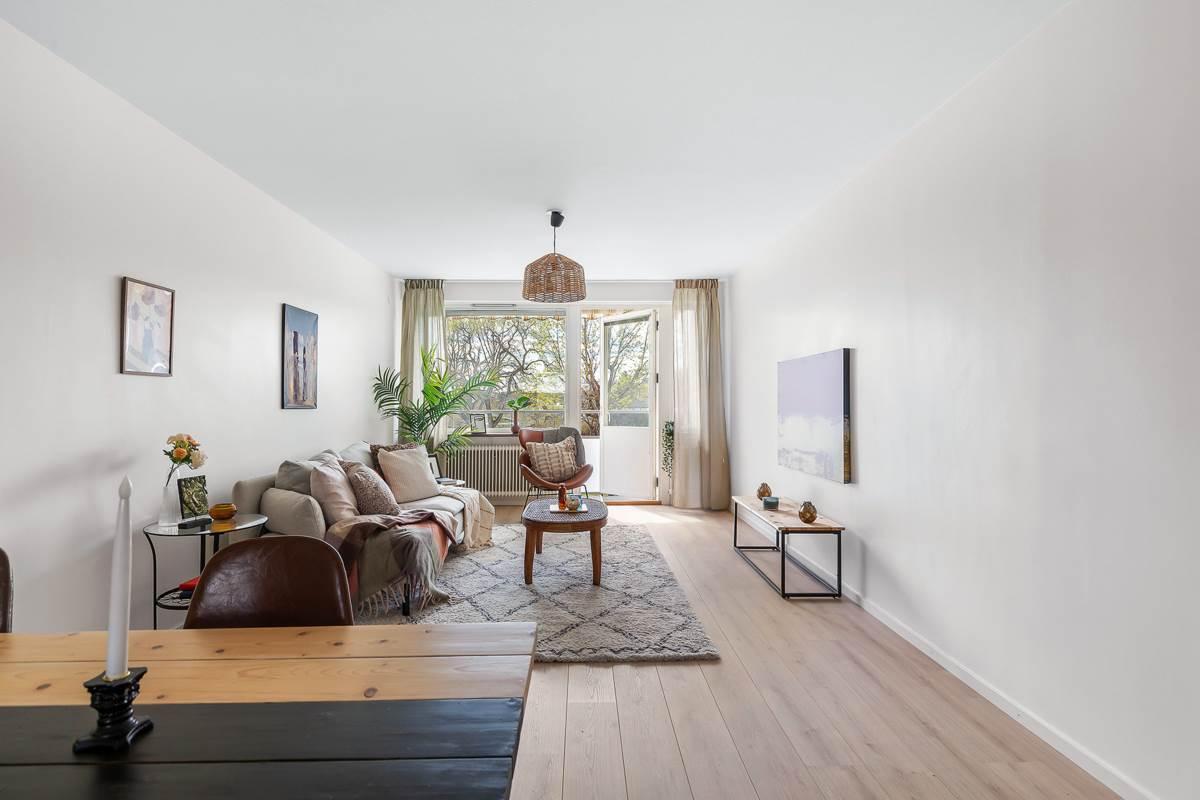 Bostaden har nyligen genomgått en omfattande renovering där varje detalj har fått noggrann omsorg. Vid entrén välkomnas du av en rymlig hall som inte bara ger ett varmt mottagande utan även erbjuder gott om förvaringsutrymme för att hålla ordning och reda. Lägenheten har två rymliga sovrum med gott om garderobsutrymme samt en praktisk klädkammare med generös förvaring. Det finns ett stort helkaklat badrum och ett modernt kök med gott om förvaringsmöjligheter och ytor för matlagning. Det rymliga vardagsrummet är en inbjudande plats med stora sällskapsytor och stora fönster som släpper in rikligt med naturligt ljus. Här finns även plats för ett matbord för 6-8 personer. Från vardagsrummet når du den härliga balkongen där du kan njuta av solen hela dagen, eller koppla av i det inglasade uterummet och förlänga utesäsongen.