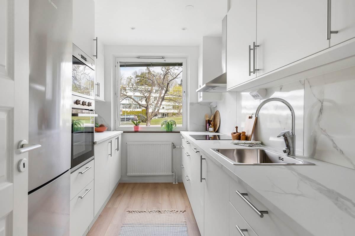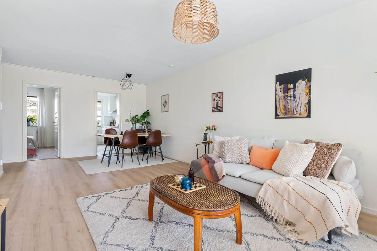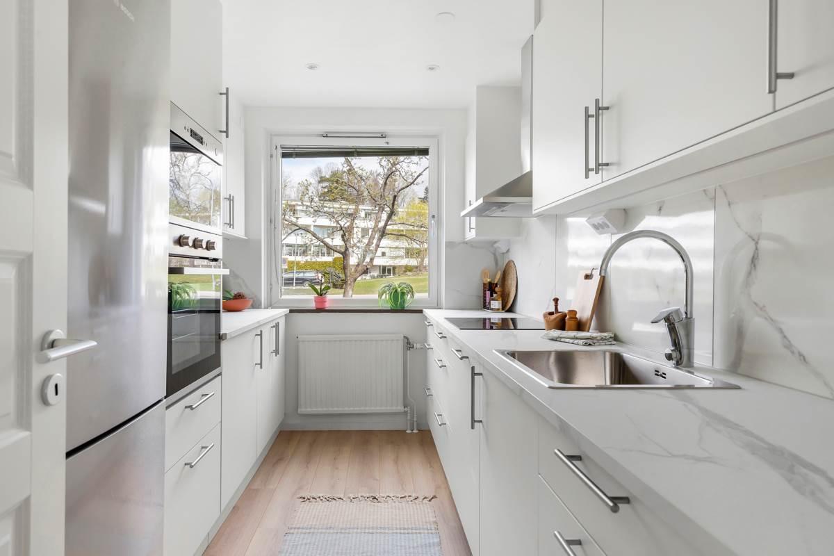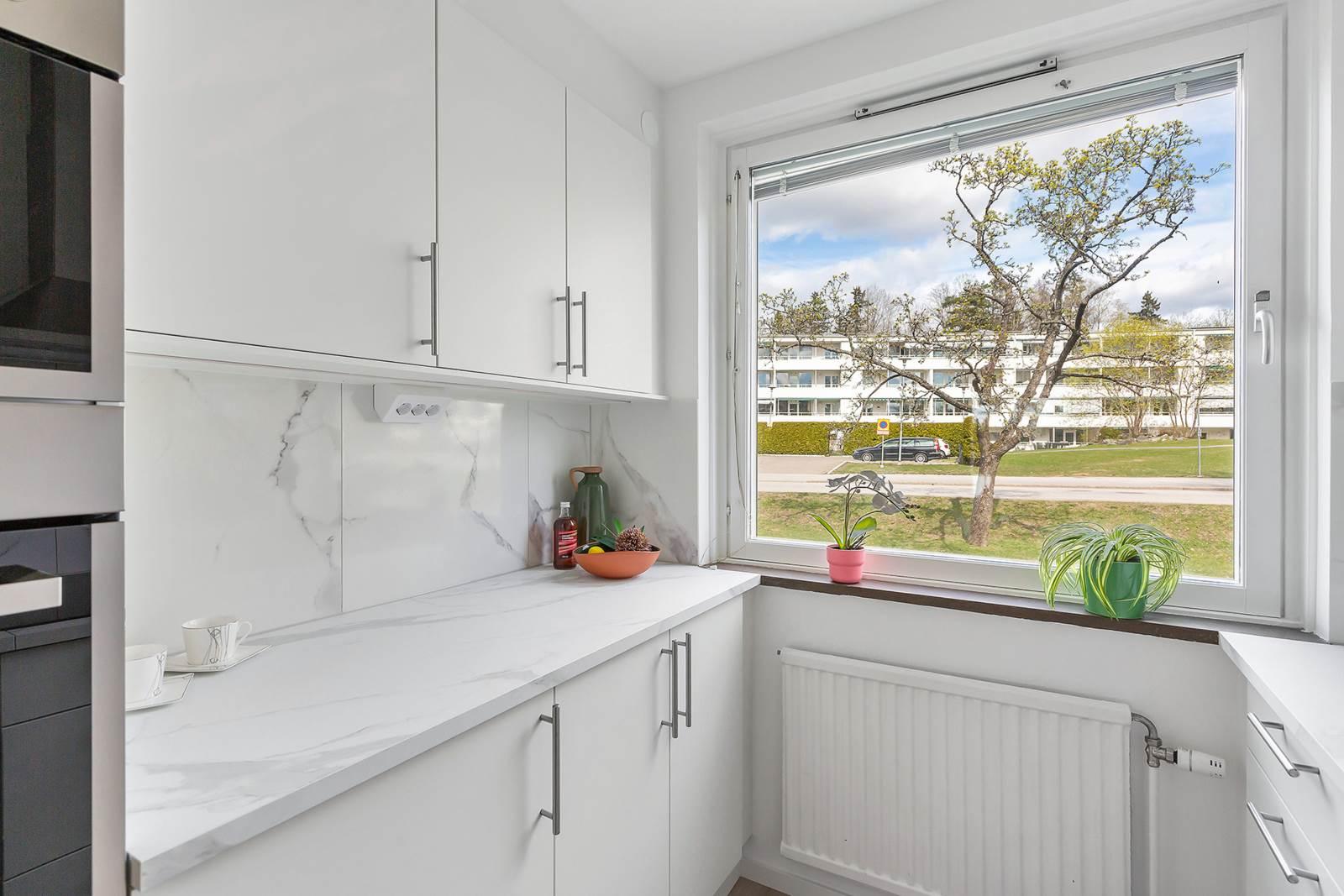 Bostaden har nyligen genomgått en omfattande renovering där varje detalj har fått noggrann omsorg. Vid entrén välkomnas du av en rymlig hall som inte bara ger ett varmt mottagande utan även erbjuder gott om förvaringsutrymme för att hålla ordning och reda. Lägenheten har två rymliga sovrum med gott om garderobsutrymme samt en praktisk klädkammare med generös förvaring. Det finns ett stort helkaklat badrum och ett modernt kök med gott om förvaringsmöjligheter och ytor för matlagning. Det rymliga vardagsrummet är en inbjudande plats med stora sällskapsytor och stora fönster som släpper in rikligt med naturligt ljus. Här finns även plats för ett matbord för 6-8 personer. Från vardagsrummet når du den härliga balkongen där du kan njuta av solen hela dagen, eller koppla av i det inglasade uterummet och förlänga utesäsongen.